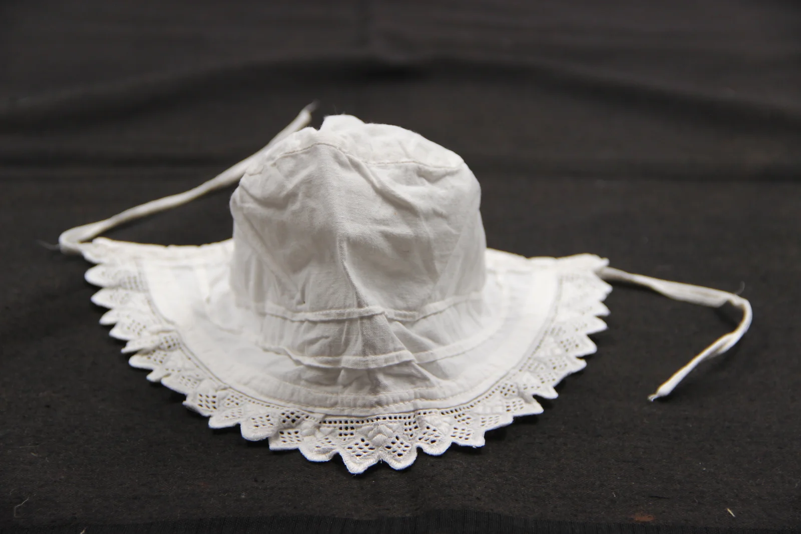 Description: Decorated with factory-made Madeira ribbon. Can be tied with a string. Of more recent origin.