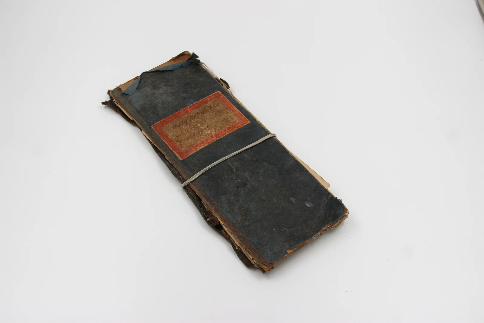 Description: Handwritten label on the cover: "Ínség kölcsönb…." followed by illegible text. Below the label, a difficult-to-read year appears, possibly 1889. An oblong notebook with handwritten entries and several different documents. The cover is torn and detached from the notebook.