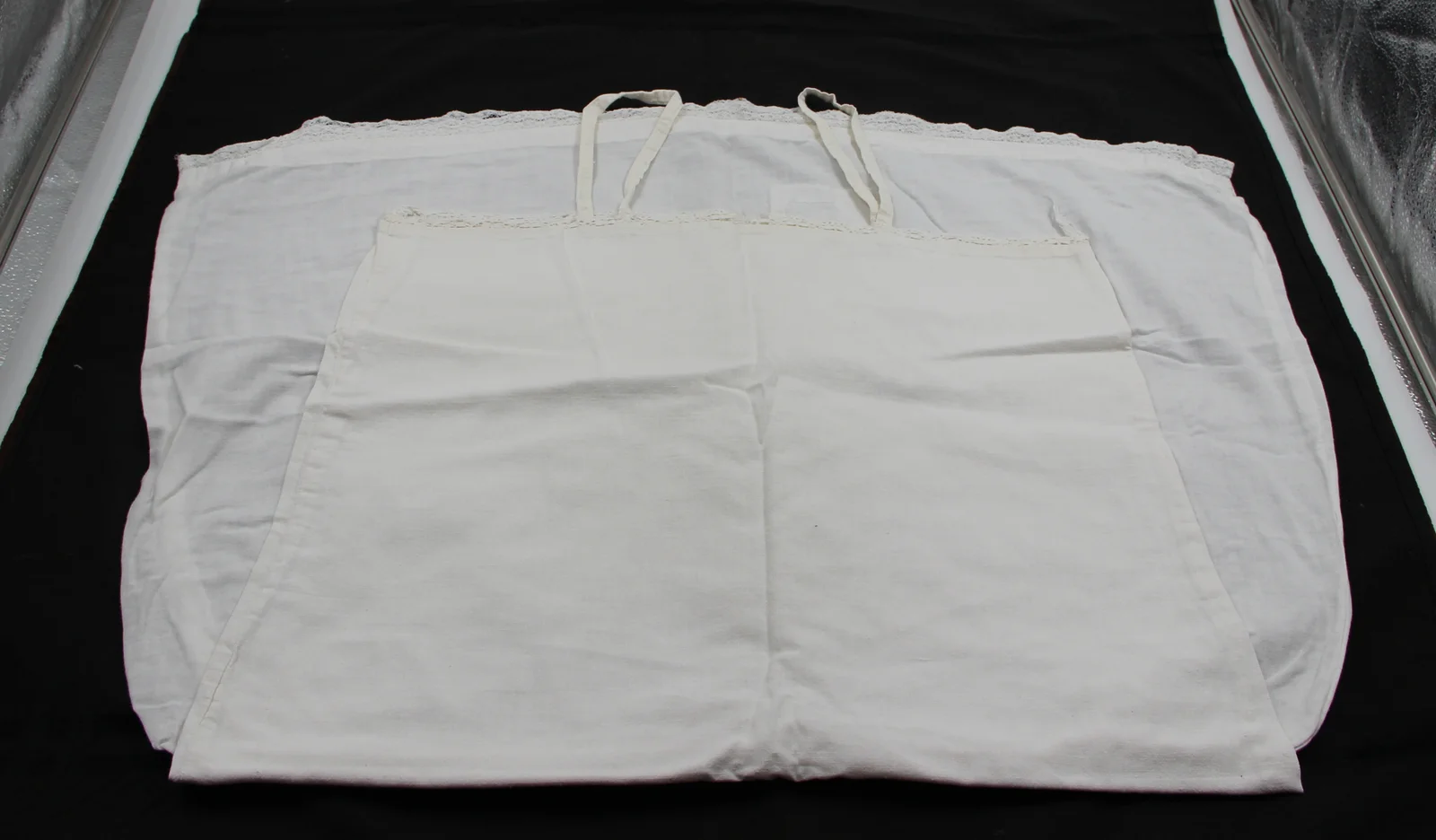 Description: Thin-strapped. The upper part is horizontally straight, and its cut is also straight. Gathered at the hips. The bottom is decorated with fine lace. The upper lace decoration is less fine.