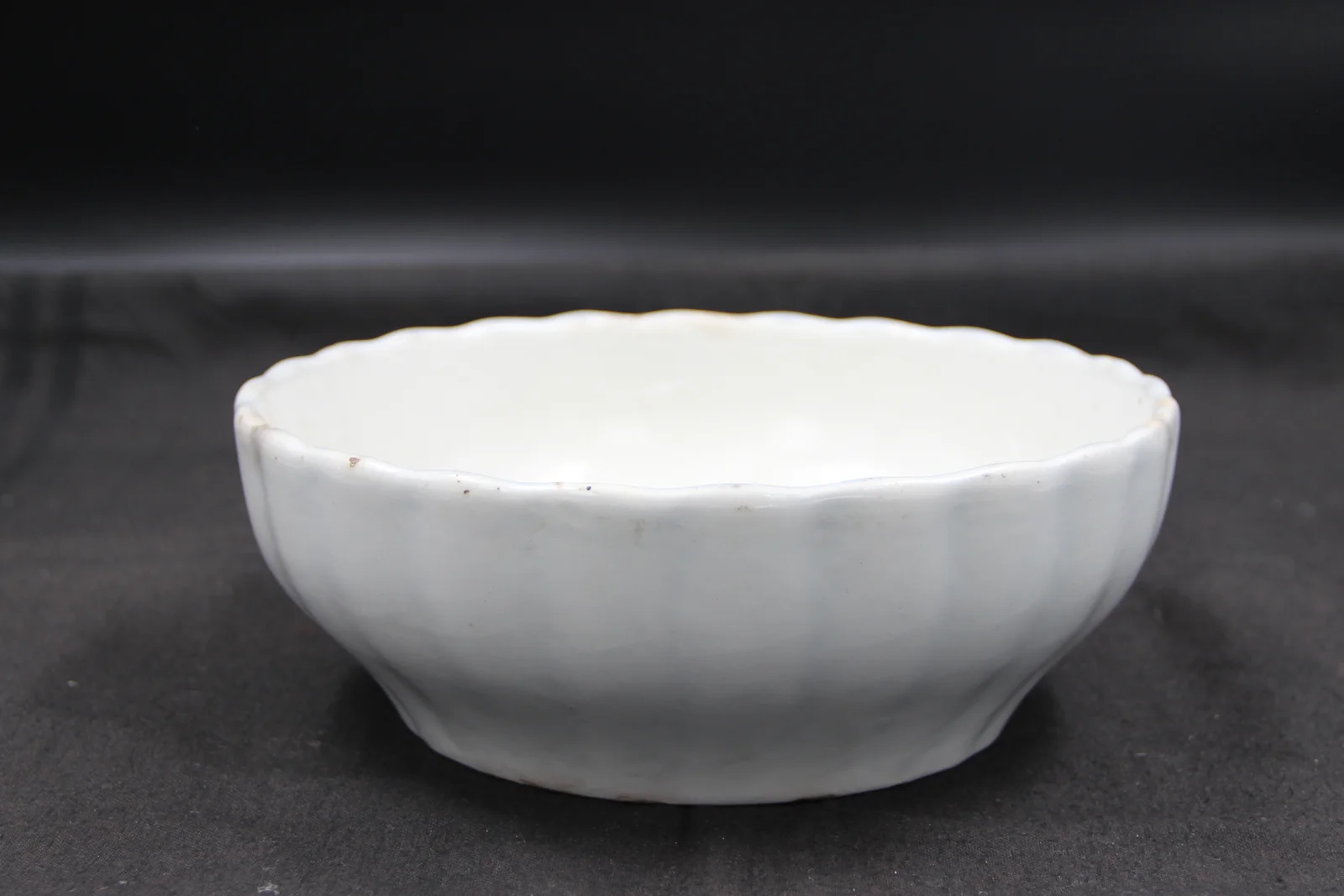 Description: Its wall is uniformly ribbed, its rim is wavy. Base mark: "W….burg" - illegible, as it is crossed out in black.