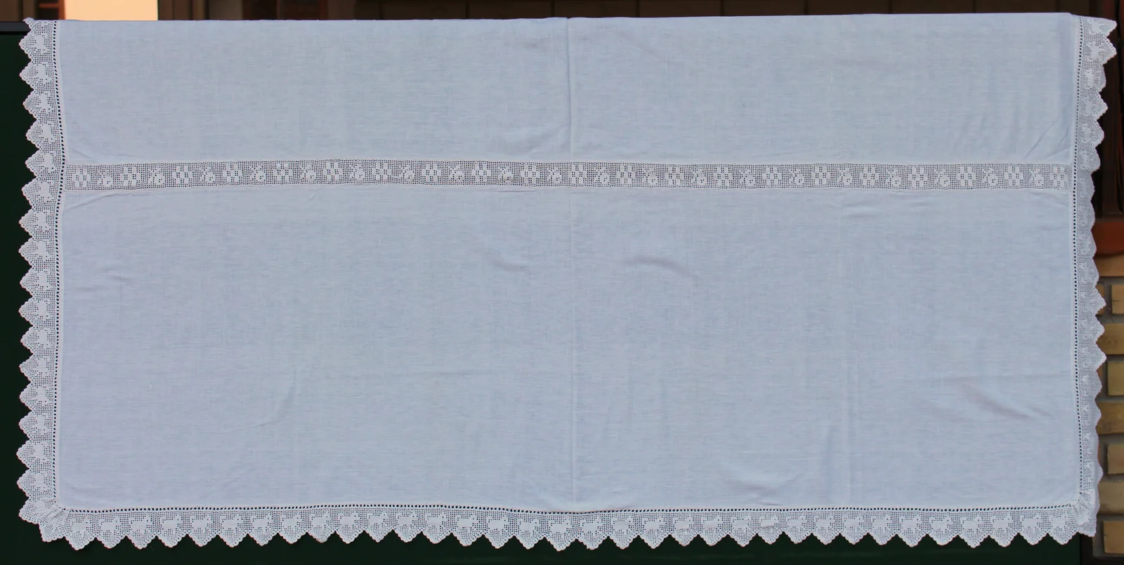 Size: 115 x 173 cm, central lace: 173x6 cm, surrounding lace: 7 cm