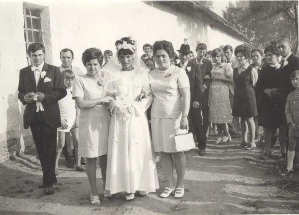 Tanító Sándor és Ilona Csókán keltek egybe 1971-ben. Ilona mellett testévre Sós Erzsébet, és sógornője Kasza Anna áll.