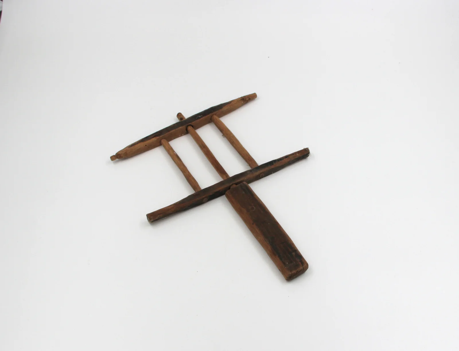 Leírás: Minden része fából van. Házi készítésű. Nyele nem kerek, hanem lapos.