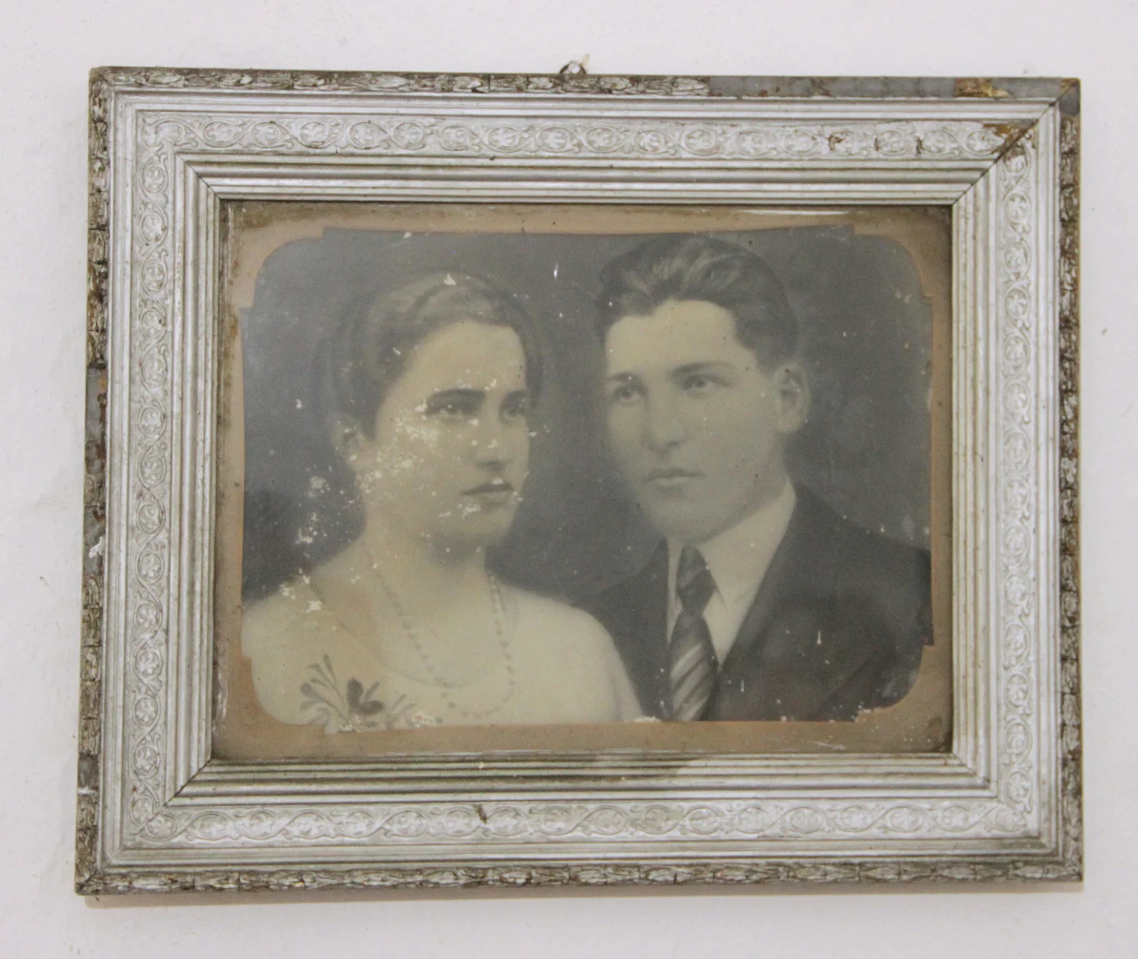 Opis: Uvećana dagerotipija mladog bračnog para. Drveni ram je obojen u srebrno. Gipsani ukras drvenog rama je sa biljnim ornamentima.