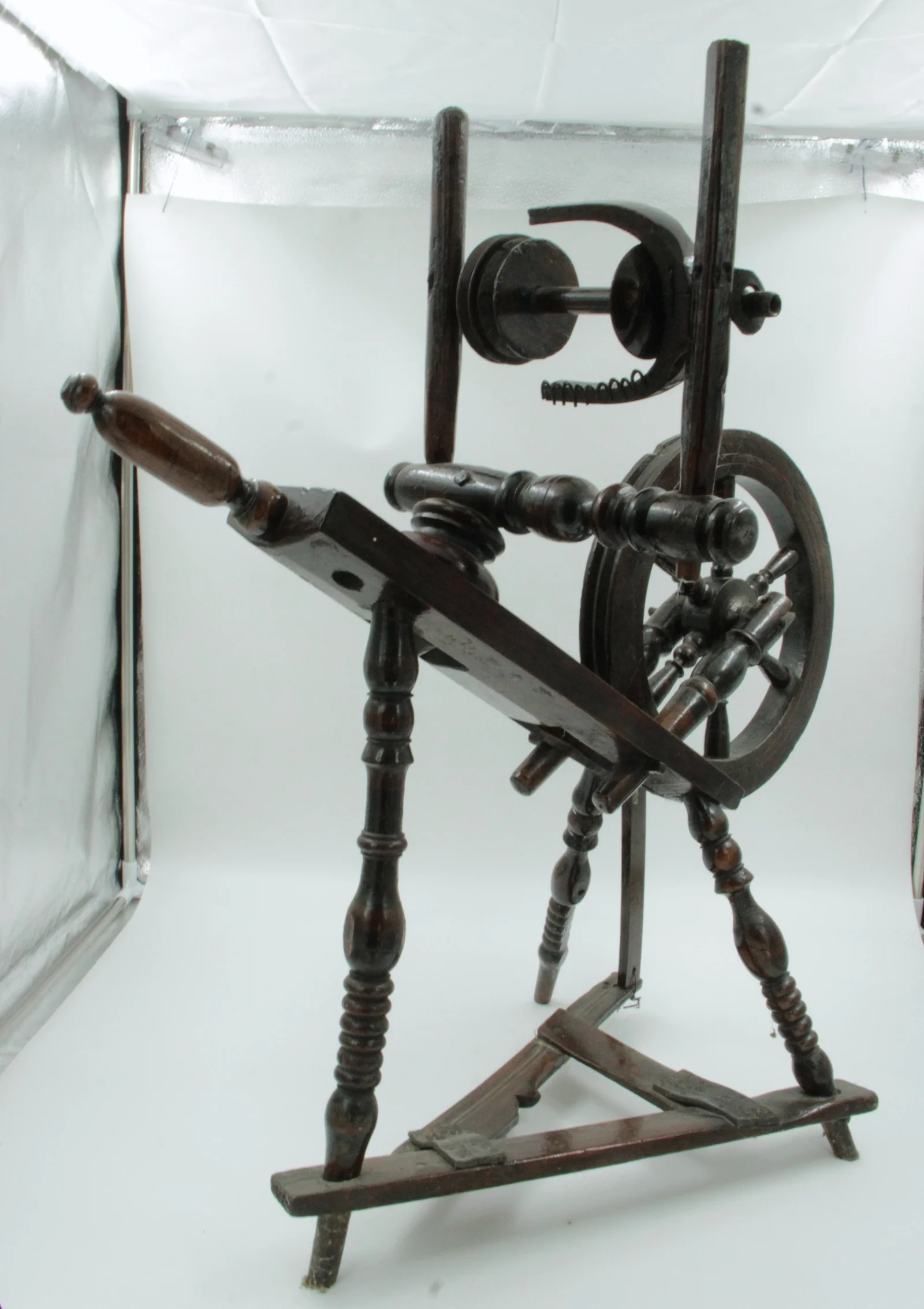 Opis: Sa tokarenim elementima. Pedala je pričvršćena kožom, u dobrom je stanju. Pogon je žicom pričvršćen za pedalu. Lakirano.