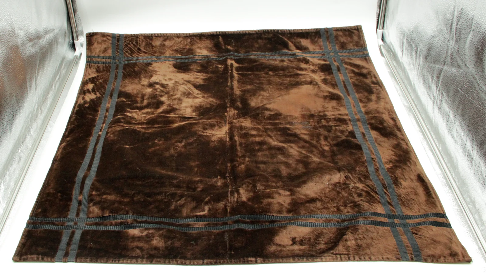 Opis: Tamnosmeđi somot, sa po dve crne pruge na sve četiri strane.